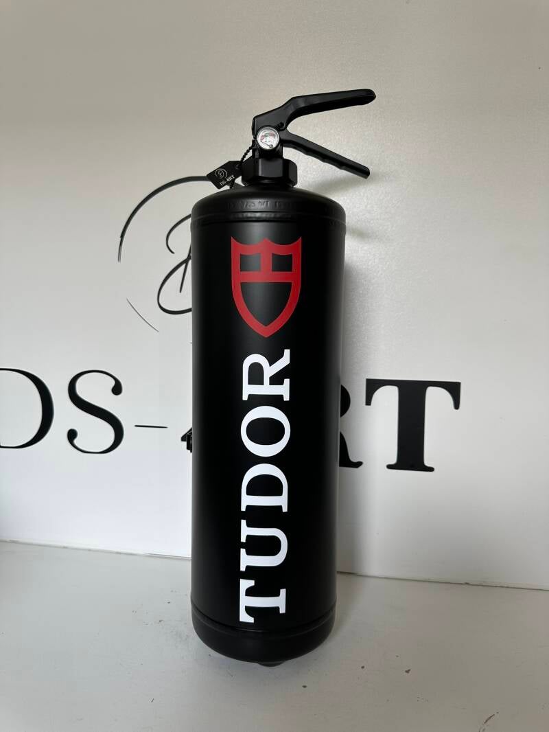 Tudor Brandblusser – Limited Edition Art PieceVoeg een statement toe aan je interieur met deze exclusieve Tudor Brandblusser – een handgemaakt kunstwerk met een luxe uitstraling en een knipoog naar iconische merken.Met zijn hoogte van 57 cm is dit limited edition designstuk een opvallende eyecatcher voor iedere kunstliefhebber die durft te kiezen voor originaliteit en stijl.Elke brandblusser is zorgvuldig met de hand afgewerkt en wordt geleverd met een officieel certificaat van authenticiteit, zodat je zeker weet dat je een uniek en waardevol kunstobject in huis haalt.Let op: dit product is uitsluitend bedoeld als decoratie en is niet functioneel als brandblusser.